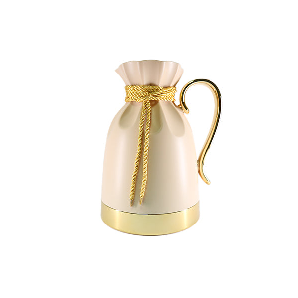 Expertly designed with a stylish rope wrapping in beige and gold, this vacuum flask is perfect for keeping your beverages hot or cold for hours. Made with top-notch insulation technology, it boasts a spill-proof lid and a sturdy design, making it the ideal choice for any on-the-go adventure.